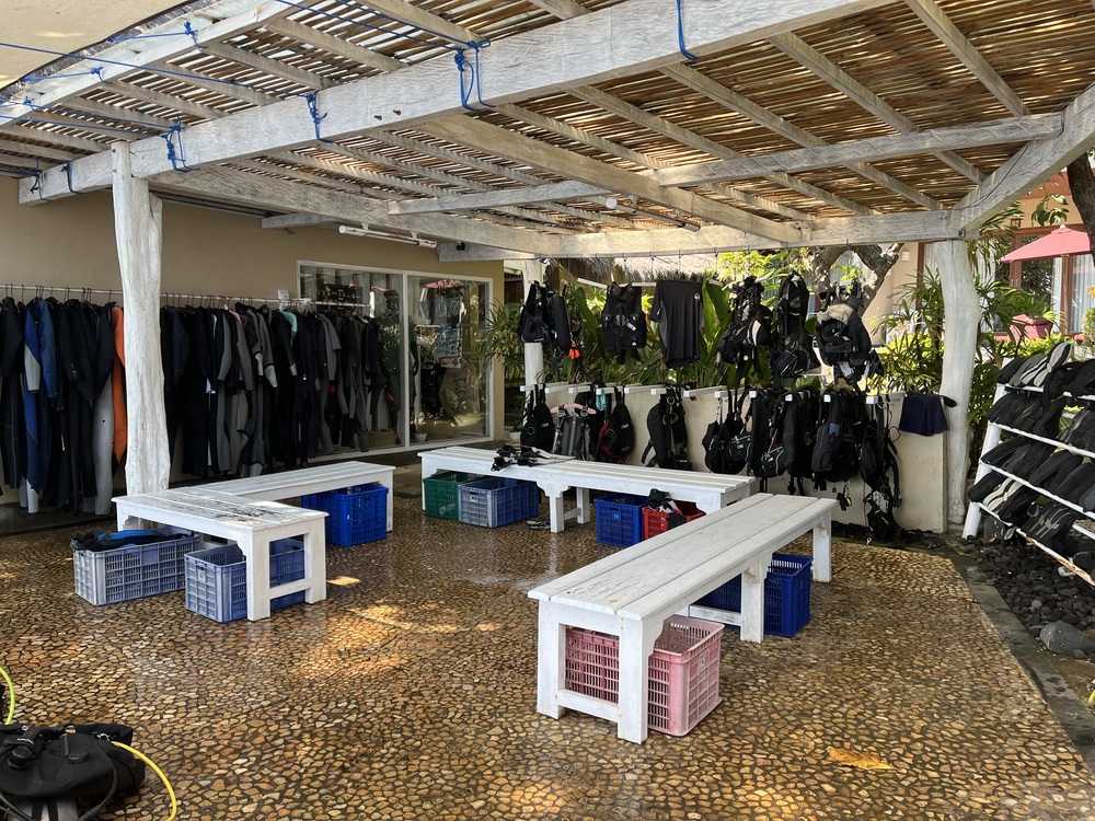 Nous avions réservé le bungalow. Cette chambre est en fin de vie (climatisation bruyante, hygiène moindre dans la salle de bain, ...). C'est dommage. Le restaurant est très bien, avec un bon choix et un personnel sympathique. Les soirées à thème (bbq, bali dance) ne nous ont pas vraiment séduits. La base de plongée est professionnelle. Les questions ont reçu des réponses positives et rapides. De bons guides qui connaissent leurs sites de plongée. L'oxygène a été fourni immédiatement sur demande. Les sites de plongée sont plus amusants si vous aimez plonger dans la boue. N'oubliez pas les difficultés d'embarquement (rochers roulants, roches, etc.) si vous plongez du rivage ou si vous devez monter dans un bateau pour une plongée en bateau. L'épave du Liberty est acceptable en termes d'emplacement et de possibilité de plongée, mais décevante en tant qu'épave. Trop de bruit. Un peu plus loin se trouve l'épave du Kuba. Il est légèrement plus profond mais nous l'avons personnellement préféré en tant qu'épave. Pour ceux qui veulent se rendre à Manta Point : comptez sur un trajet (simple) d'au moins 2 heures et vérifiez vous-même les prévisions météorologiques. Dans une mer agitée, il y a beaucoup moins de raies manta à voir. Par mer calme, il y en a beaucoup plus. En fait, il est conseillé de passer d'abord quelques jours dans le port d'où partent les bateaux pour Manta Point (près de Manggis) et ensuite seulement de se rendre à Tulamben. Lors de l'excursion des jours sans plongée. Beaucoup de temps passé assis dans la voiture pour voir de nombreux temples hindous. Mais les paysages sont magnifiques. Conseil : réservez d'abord un ou plusieurs jours dans le centre d'Ubud pour faire les excursions sans plongée à partir de là pour explorer Bali.