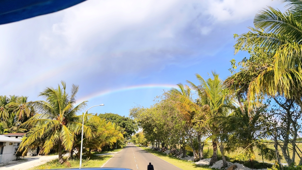 On traverse un paysage tropical de palmiers avec des plages de rêve.