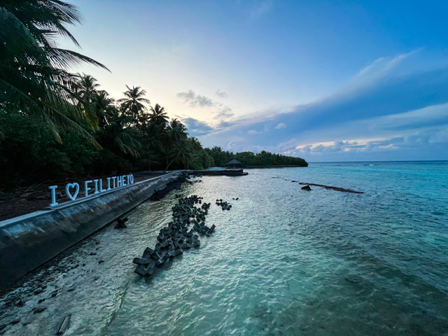 Filitheyo ist eine schöne Insel, auf der man sich ein wenig bewegen kann. Die Sandwege spaziert man täglich mehrmals, da man immer wieder ins Restaurant geht.. wo das Essen sehr currylastig ist und leider wenig Angebote für Vegetarier bietet. Das Essen war auf den ersten Blick divers, dann aber für uns eine kleine Qual, was zu finden. Aber: es gibt immer Obst und auch Salate zum Zusammenstellen. Der Bungalow ist geräumig, wir haben sogar gebrauch vom Fernseher gemacht. Es gibt einen Sender in englischer Sprache, auf dem Filme laufen und ein paar vorinstallierte Filme, von denen nicht alle abspielbar sind. Für Regentage aber eine Option. Bei usn gibg die Spülung im Bad irgendwann nicht, schon bei Ankunft waren da lose Elemente am Spülbecken, irgendwannmussten wir den Kasten auseinandernehmen und das Servicepersonal rufen. Es kam auch gleich ein Monteur, der reparierte, wohl aber nicht probierte, ob es geht. Wir haben das dann so belassen und uns anderes geholfen, da wir fast am Abreisen waren.