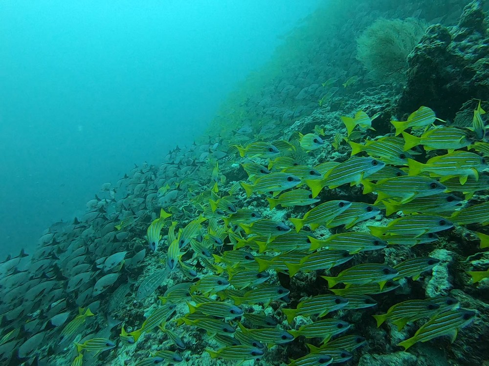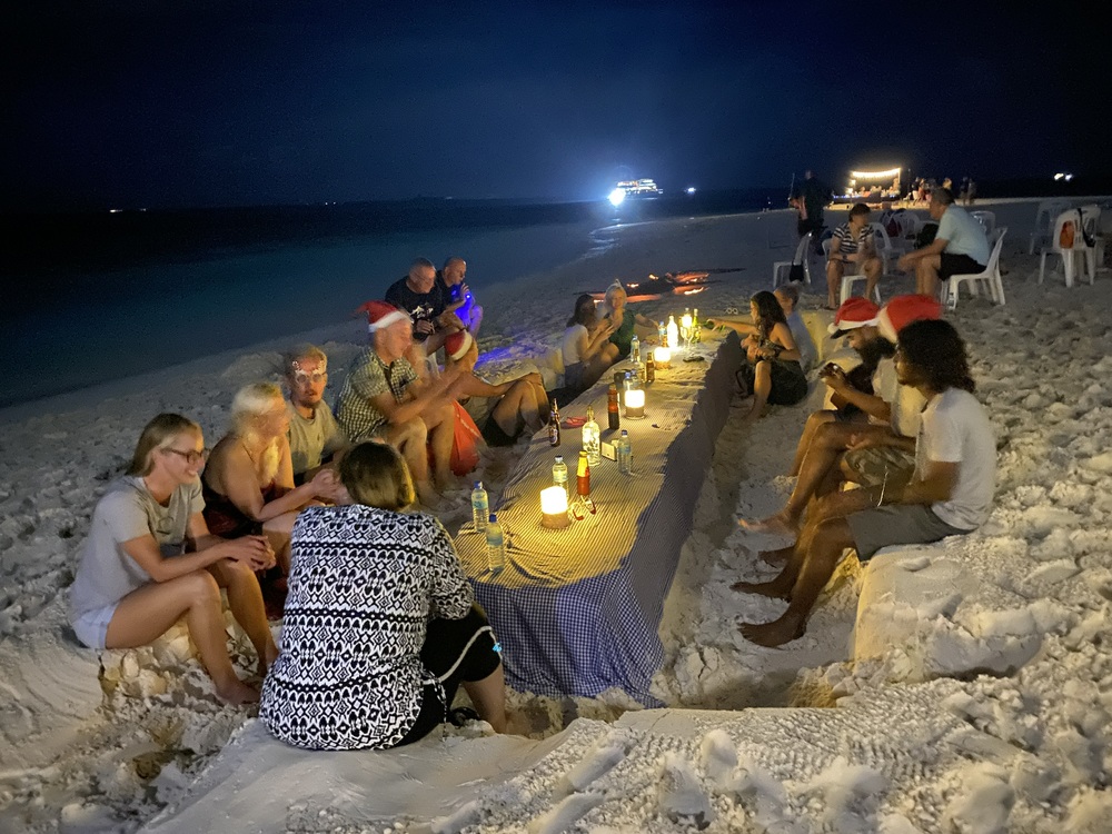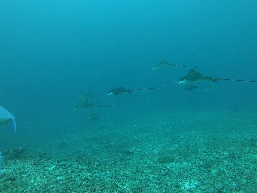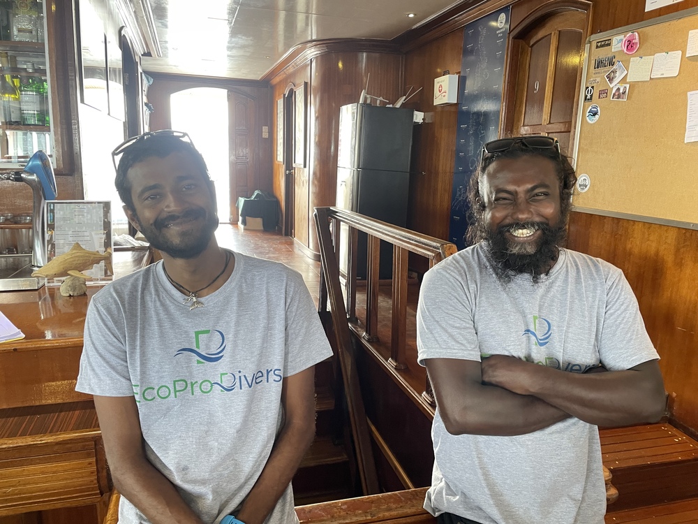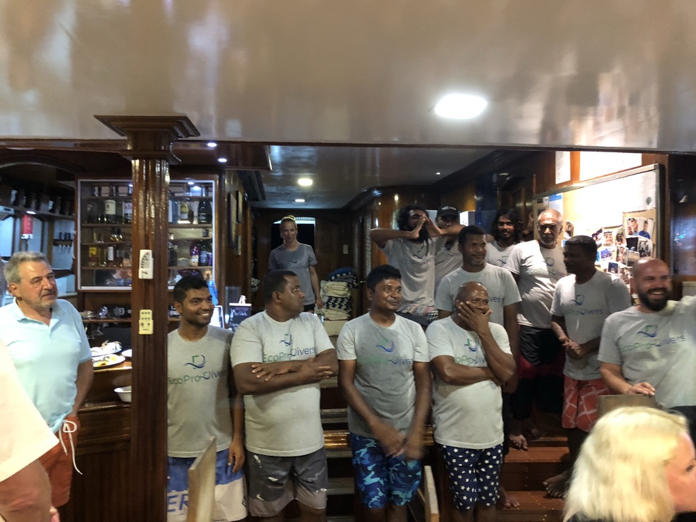 Es gab wenige Kids, die getaucht sind, dafür viele Party-People, welche bis weit in die Nacht lautstark feierten und uns den Schlaf raubten. Es wurde angekündigt, eine Öko-Safari zu sein mit Hinweisen zur Umwelt und Müllsammeln auf einer Insel, was aber nicht passiert ist. Dafür gabs viele Bierdosen zu kaufen. Die Tauchguides sehr sejr nett und der Kapitän ebenfalls, haben alles versucht, um uns Haie und Mantas zu zeigen, um die ging es leider aber auch hauptsächlich. Es wurde nicht geguckt, wie tief die Kinder eigentlich tauchen dürfen, daran haben wir uns dann allein versucht zu halten, was nicht immer einfach war, da an manchen Orten z.B der Riffhaken gesetzt werden musste, das kleinere Kind war oft zu tief. Als Familentauchsafari hatte ich mir etwas anderes vorgestellt.