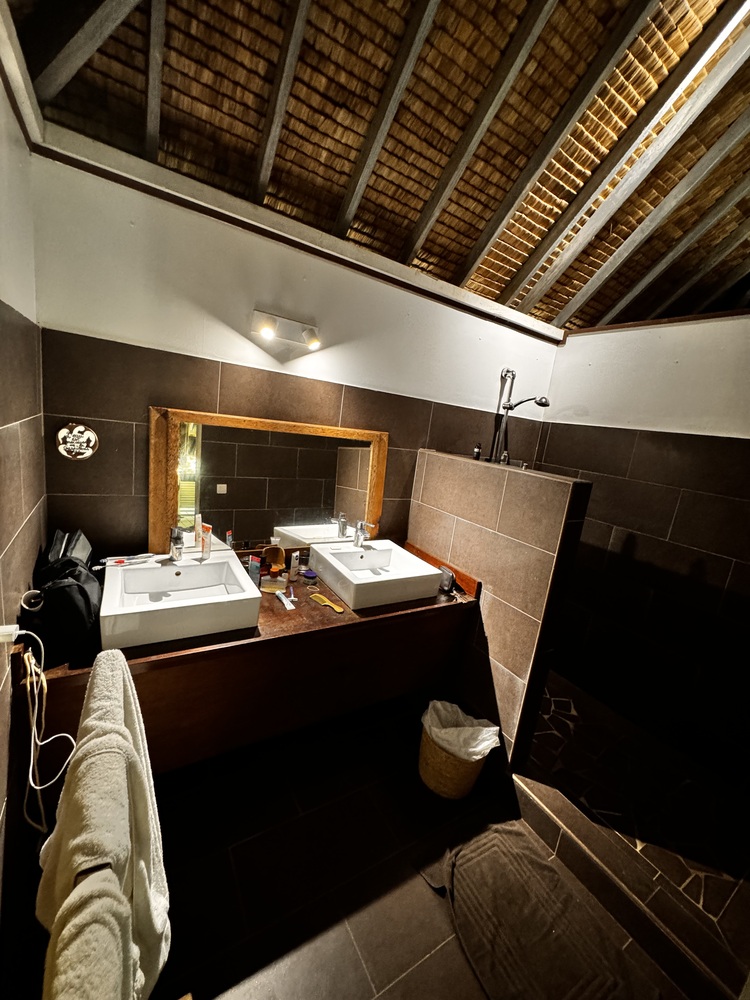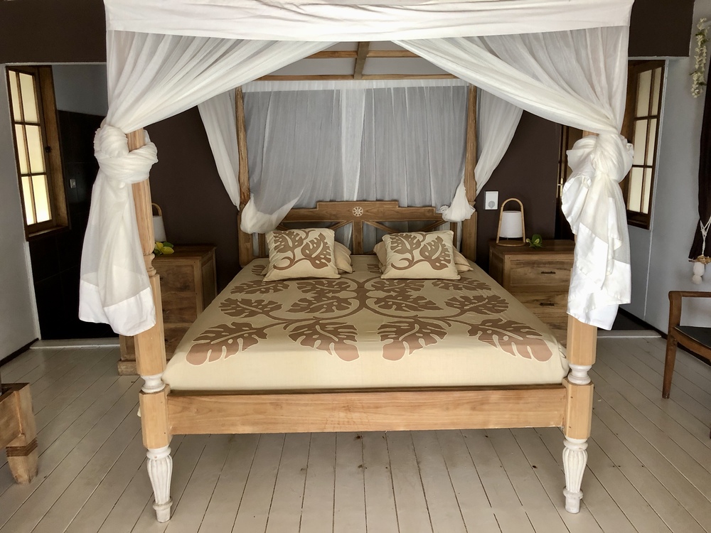 Sehr schöner, freistehender Bungalow. Der Bungalow ist geräumig, hat ein großes Bad mit separaten WC. Bett mit Moskitonetz. Durch offen Bauweise sehr luftig, eine Klimaanlage ist nicht notwendig, selbst den Ventilator haben wir nie genutzt.