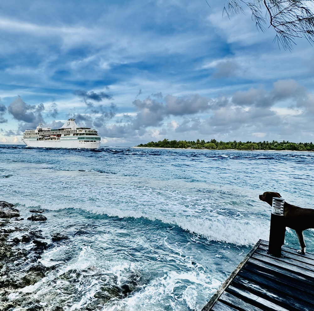 Top Lage direkt am Tiputa Pass, von der Terrasse konnten wir Delphine beobachten. Dadurch wird das Restaurant zu einem beliebten Ausflugsziel.