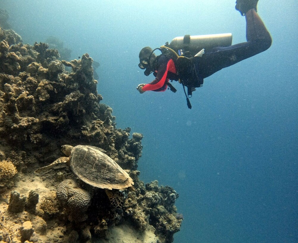 Eine weitere Besonderheit, die man nur hat, wenn man zum ersten Mal hierher kommt, ist der erste Tag des Tauchens. Sie zahlen für unbegrenztes Tauchen am Hausriff, aber der erste Tag ist nicht wirklich unbegrenzt. Um 9 Uhr findet eine Einweisung statt, die für Neulinge (und vorzugsweise auch für Personen, die schon einmal dabei waren) obligatorisch ist. Wenn Sie schon einmal dort waren, können Sie einen Tauchgang vor diesem Briefing machen, aber wenn Sie zum ersten Mal kommen, müssen Sie 2 geführte Tauchgänge machen. Die erste ist um 11 Uhr nach dem Briefing und die zweite um 2 Uhr morgens. Und obwohl man für unbegrenztes Tauchen bezahlt, ist der erste Tag mit unbegrenztem Tauchen eine große Enttäuschung. Wir machten 2 und manchmal 3 Tauchgänge von 75-90 Minuten vor dem Mittagessen. Sie sollten hier mehr nach dem Prinzip "Sie fragen, wir bedienen" verfahren. Wer fanatisch tauchen will, sollte die beiden obligatorischen Tauchgänge am Morgen machen.