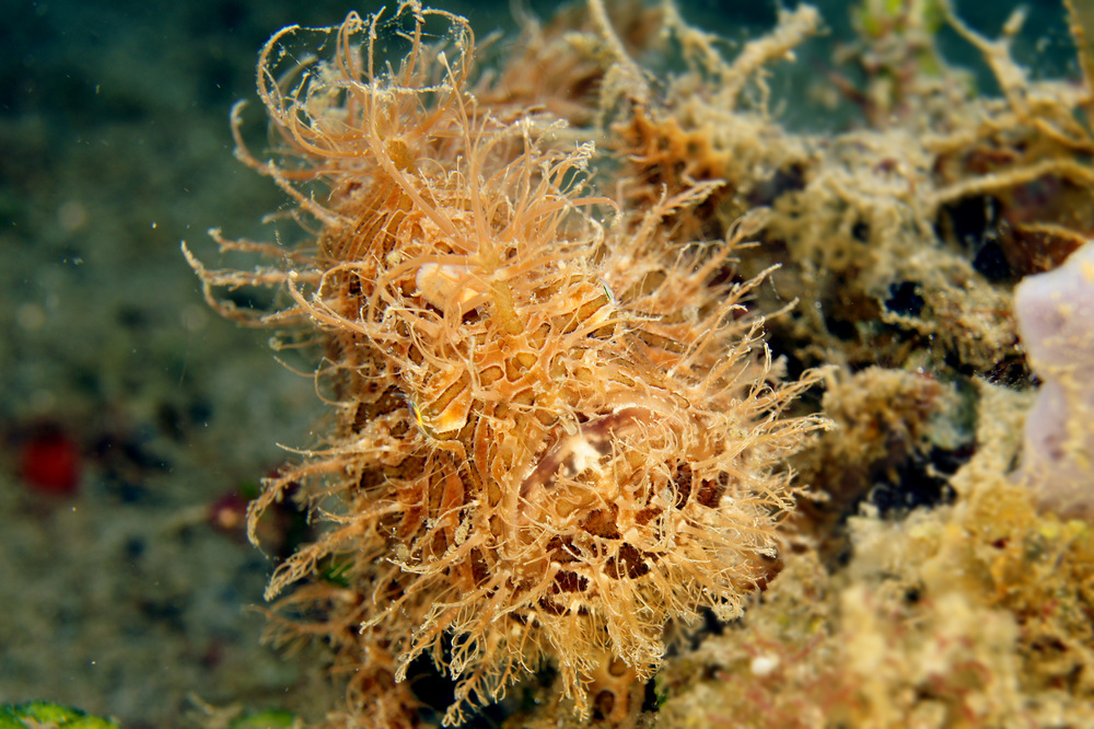 Doch nun zum Wichtigsten – dem Tauchen: Was soll ich sagen, unsere Erwartungen wurden wirklich übertroffen! Wir wollten Makro und das bekamen wir, sogar in der XXXXS-Makro-Version! Das muss jedem bewusst sein, der hier anreist: Makro, makro, makro…. Auf das andere schaut man gar nicht. Von der Schildkröte, die mal an uns vorbei schwamm, habe ich bisher noch kein Foto auf Speicherkarte gefunden…An dieser Stelle nochmal ein ganz dickes Lob an alle Guides. Es ist unvorstellbar, was die alles entdecken. Und dann zeigen sie auch noch an, von welcher Seite man dieses „Nichts“ fotografieren soll, weil sie erkennen, wo vorne und hinten ist. Ein besonderes Highlight war der Bonfire-Tauchgang – 90 Minuten durch das schwarze Wasser treiben und schauen, was da im Dunkeln alles auftaucht.