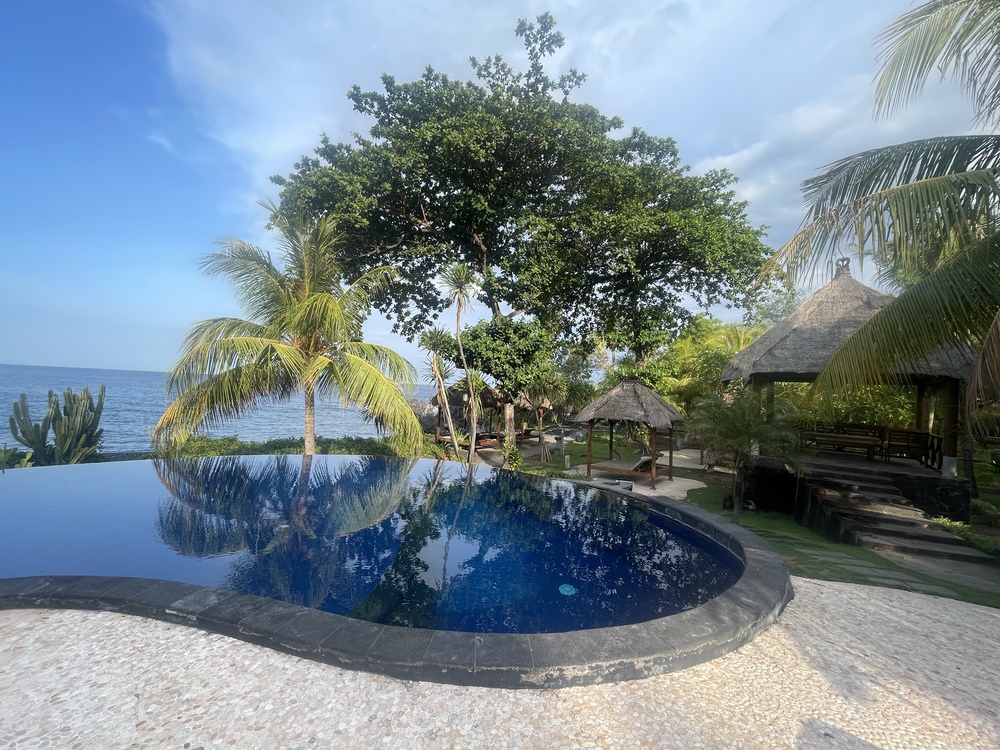 Sehr schöne Anlage mit vielen Bäumen, die vor Sonne schützen und Privatsphäre garantieren und einem tollen Pool. Die Bungalows sind geräumig mit einem tollen offenen Bad, einer sehr guten Klimaanlage und die Betten sind super bequem. Es gibt eine Minibar, einen Wasserkocher mit Kaffee und Tee und Erdnüsse werden regelmäßig aufgefüllt. Bei der Begrüßung bekommt man eine Metall-Flasche mit seinem Namen geschenkt, in die man sich Wasser im Restaurant abfüllen kann. Wenn man keine Lust auf Pool hat, kann man bequem ins Meer zum Schwimmen oder Schnorcheln gehen.