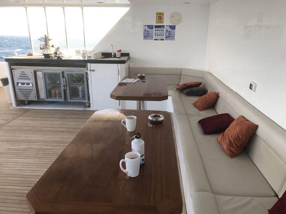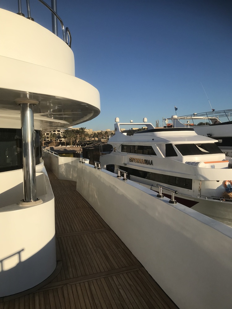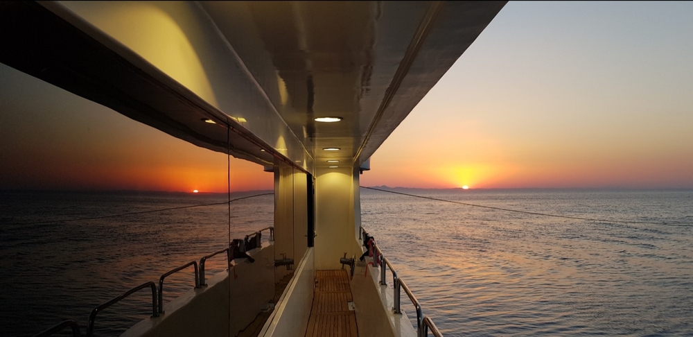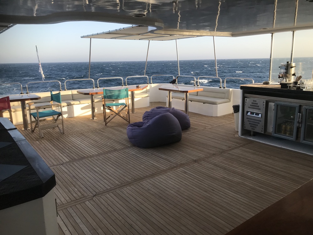 Grundsätzlich waren wir dennoch zufrieden, da es ein schönes Schiff ist, aber zur Info: es gibt nur wenige Plätze draussen, welche Schatten bieten.
