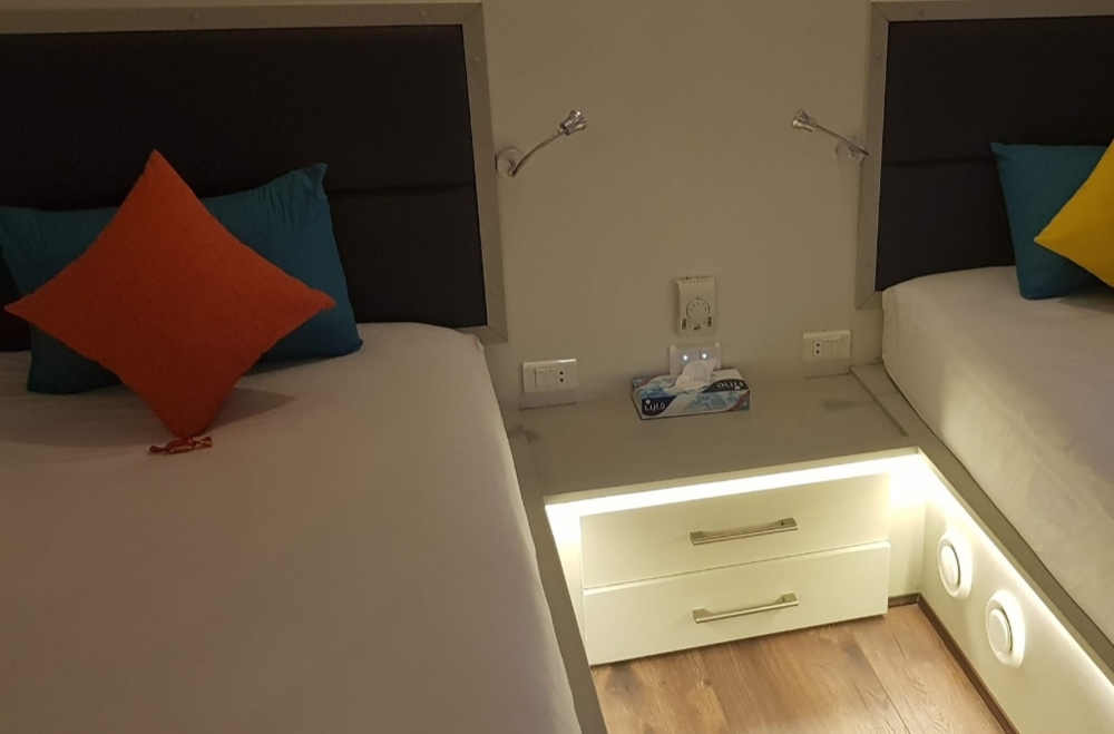 Wir waren in einer Masterkabine (Twin), diese ist aber entgegen der Beschreibung als einzige der Masterkabinen ohne Sofa, sowie auch mit einer viel kleinerer Ablage (Tisch würde ich das nicht bezeichnen, es fehlt ein Stuhl und darunter befindet sich die Minibar, man kann sich also nicht dran setzen) ausgestattet. Die Klimaanlage im Raum ist sehr laut und auf dem Bett am Fenster kriegt man das Gebläse ab. Da es sehr heiss war (August), war es für uns keine Option die Anlage auszuschalten. Wir konnten uns nicht wirklich daran gewöhnen. Der Reinigungsservice habe ich schon besser erlebt (teilweise schmutzige Böden, 1x Wäschewechsel fand ich etwas knapp, da die Duschtücher nicht richtig trocknen konnten und somit 1 Tag vor dem Wechseln zu müffeln begonnen). Toll war das grosse Bad bzw. die grosse Dusche.