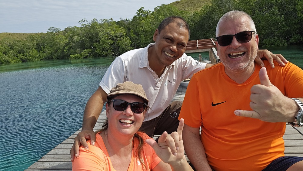 Nach 2 Tagen Anreise wurden wir von Barbara und Chris und einem Teil des Staff am Steg herzlich in Empfang genommen.