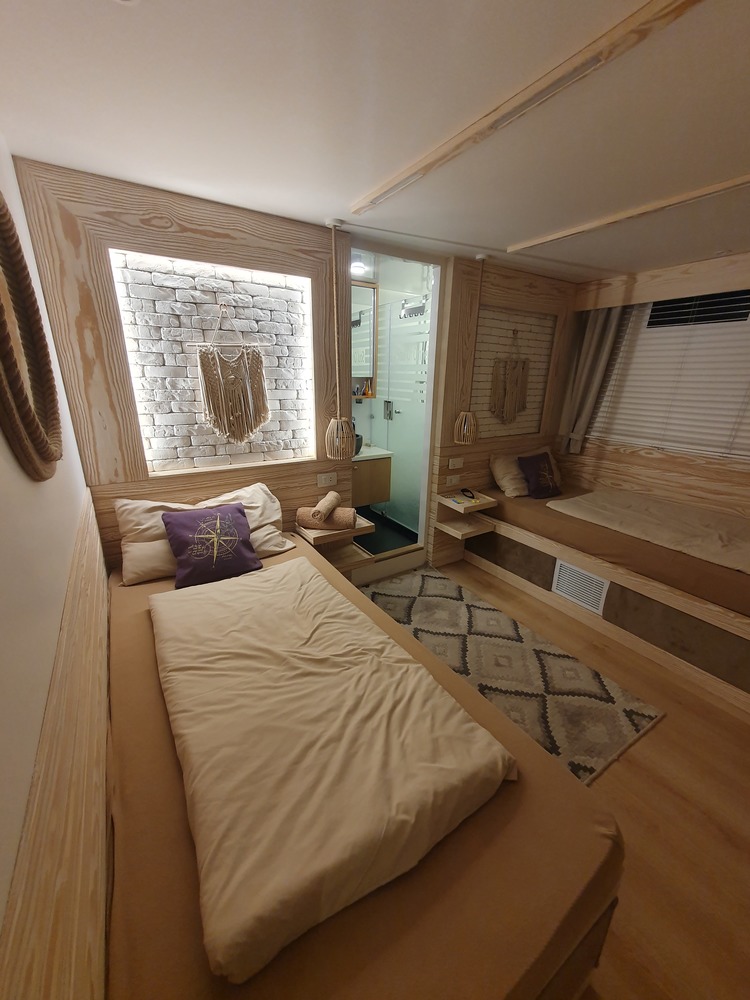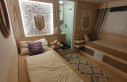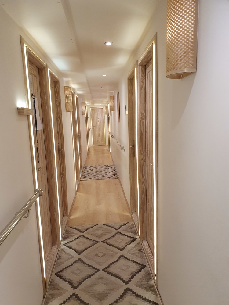 Die Kabinen inklusive der Bäder sind fast surreal geräumig, hell und freundlich und mit einem äußerst gelungenem Lichtkonzept ausgestattet. Wir tippen auf feng-shui oder so.