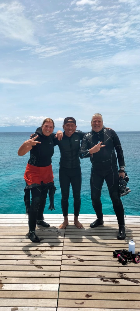 Da Barbara und Christian selbst erfahrene Taucher sind, wissen sie genau, worauf es ankommt und somit ist alles vorhanden, was ein Taucher benötigt und es ist gut durchdacht. Die Tauchbasis ist sehr gut ausgestattet, mit Trockenbereichen, Kamerabereich, Aufenthaltsbereich, Spülbecken etc. Es stehen auch Ohrentropfen zur Verfügung, um die Ohren zu desinfizieren und einer Entzündung vorzubeugen. Nach den Tauchfahrten gibt es natürlich Kaffe/Tee, Obst, Kuchen und Sandwiches. Auch um das Spülen und Aufhängen der Ausrüstung sowie das Zusammenbauen auf den Botten wird von der Crew erledigt. Die Tauchguides sind einfach super, sie finden auch die noch so kleinsten Lebewesen, wo ich schon eine Lupe brauchte. Spitze kann ich nur sagen. Es wird einem alles abgenommen, die Messung des Nitrox, das Zusammenbauen etc. Wer will, kann auch bereits im Wasser die Tauchausrüstung ablegen um bequemer ins Boot zu steigen. Ein Gast kam mit einer Liste, was er alles sehen möchte. Barbara und Christian haben danach die Tauchspots ausgesucht, um möglichst alle Wünsche zu erfüllen. So macht Tauchen Spaß.